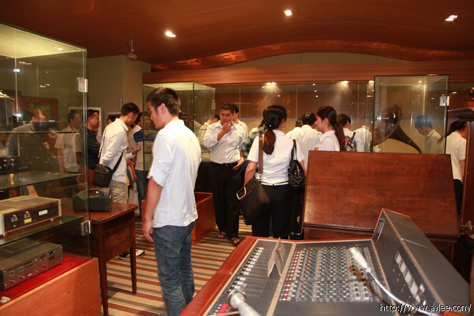 随后他们来到了位于三楼的十八子集团世界发烧音响博物馆,在我馆工作人员的带领下,他们一同走进珍藏世界古老音响设备的静态器材陈列室、汇集全球各大品牌CD机、功放的晶体管陈列室以及气势恢宏,设计奇特的音响陈列室,一干人等对这三个展示区的藏品纷纷表示由衷的感叹。随后,在工作人员的邀请下,他们来到听音室与影音室体验了世界顶级音响设备所呈现的完美效果。