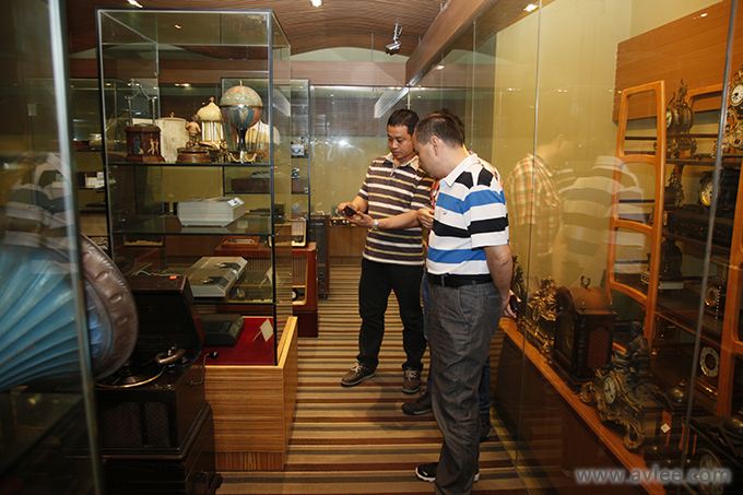 接着,接待人员带领大家参观了十八子二三楼世界发烧音响博物馆。参观了静态器材陈列室、晶体管陈列室、CD机陈列室和音响陈列室等特色展区。具有悠久历史的音乐盒、留声机;带着旧时印记的收音机、调音台;洋溢着现代音像技术的音响组合,每一件藏品无一不是世界大师的心血之作。走进听音室,聆听一曲古典音乐;走进影音室,观看一段现代3D电影,整个参观期间就像在行走着一个时光隧道,翻读着一本历史的回忆录,让人百转千回,惊叹不已。