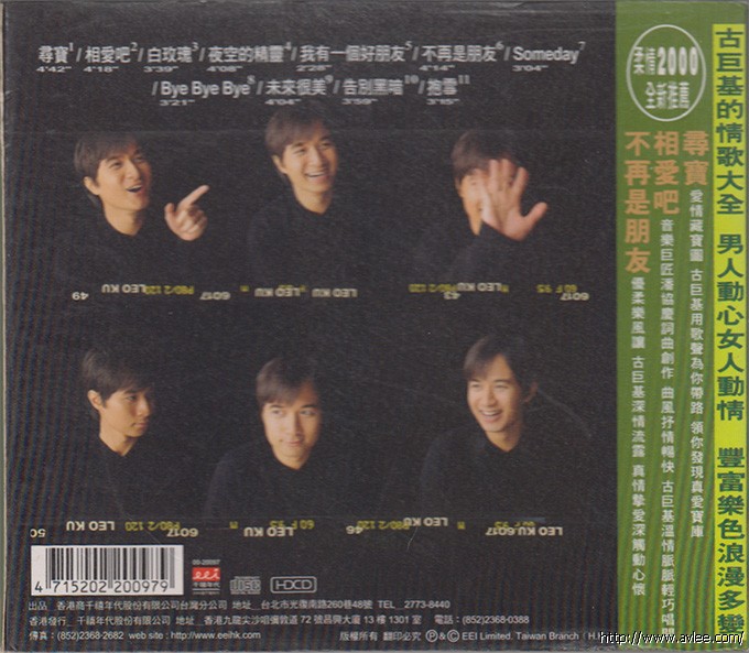 唱片名称:古巨基 寻宝歌手名称:古巨基发行公司:千禧年代发行编号:00-20097发行日期:2000年