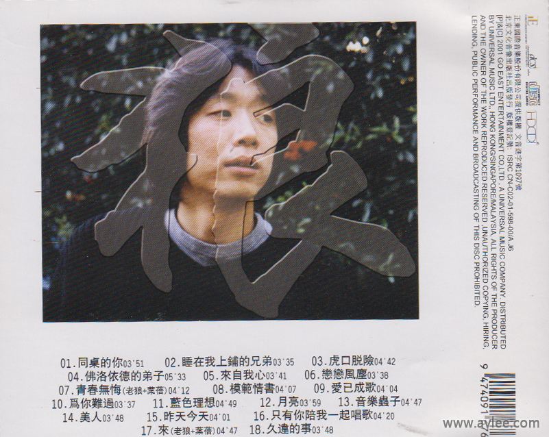 唱片名称:老狼 校园歌手经典曲精选发行公司:北京文化音像出版社出版发行发行编号:CO1-281发行日期:2001年