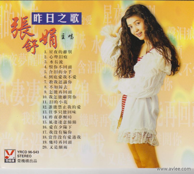 唱片名称:昨日之歌 张舒娟歌手名称:张舒娟 发行公司:荣机出品发行编号:YRCD 96-543