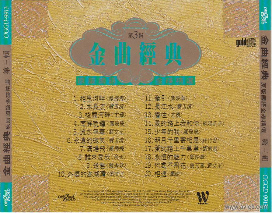 唱片名称:金曲经典第叁辑唱片歌手:发行编号:OGGD-9913发行日期:1994年唱片美图:
