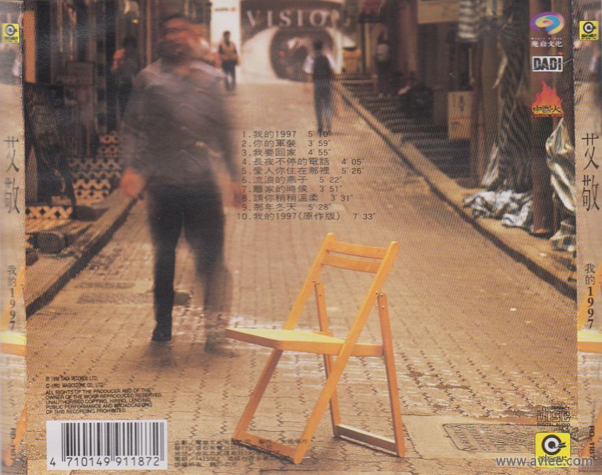 唱片名称:我的1997唱片歌手:艾敬 发行公司:滚石唱片发行编号:RD-1187发行日期:1992年唱片美图: