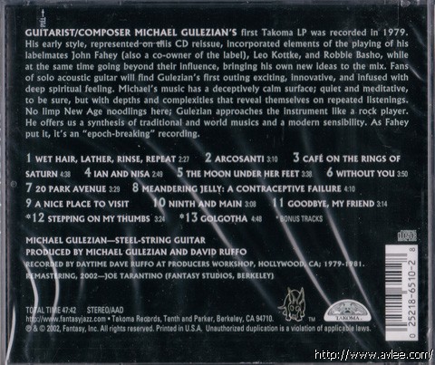 JAZZ CD名称:Unspoken Intentions 艺术家名称:Michael Gulezian发行公司:Takoma发行编号:TAKCD-6510-2(TAK 7076)发行日期:2002-06-04商品编号:001248