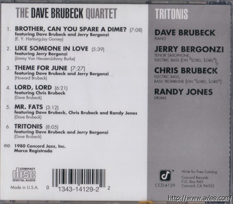 艺术家名称: Dave Brubeck Quartet发行公司:Concord Records发行编号:CCD-4129发行日期:1990-10-17商品编号:001079商品单价:85元