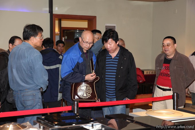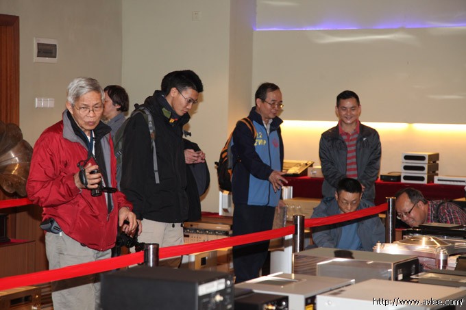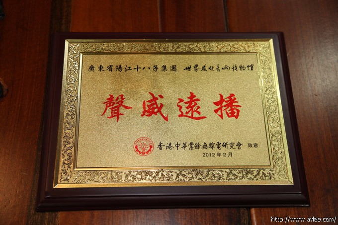 2012年2月25日,香港中华业余无线电研究会一行18人慕名前往阳江,就为一睹被誉为“世界第一烧”的音响发烧达人阳江十八子集团总经理李积回先生,同时还为他的世界发烧音响博物馆带来了一份珍贵的礼品。李积回先生非常热情接待,亲自带领他们先在集团一楼游览了十八子文化艺术长廊、时光隧道、击鼓擂台以及一睹风水宝刀、十八子神器剑等各个具有特色景点。随后,李积回邀请他们移步至“世界发烧音响博物馆”。当脚步刚刚迈上三楼,叹为观止的视觉冲击力立即扑面而来:从17世纪欧洲贵族的音乐盒、爱迪生发明的第一代留声机、飞利浦第一台CD机、电台收集来的母带机、古董机到老电影里才会出现的大喇叭、各种时期的形状各异的音箱……他们都纷纷拿出有备而来的相机,不停地按下快门拍下许多已成为历史经典的器材,并不禁赞口不绝。他们在电子管、晶体管、音箱三个陈列室驻足良久,还不时停下来与李积回先生畅享音响文化艺术殿堂,领略丰厚的音乐文化底蕴。参观完后,他们还给音博馆留下了许多宝贵的建议。