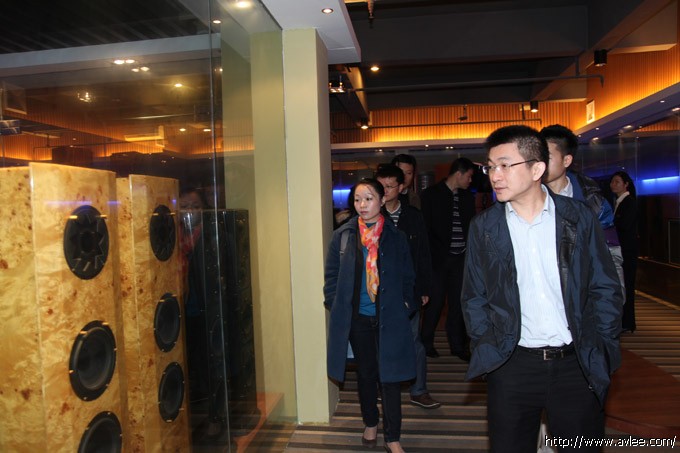 2012年3月14日,省团委领导一行15人到十八子集团参观指导。在公司工作人员的热情陪同下,他们先后参观了世界发烧音响博物馆的3个静态陈列室和18个视听空间,各个空间按声学混响原理设计,使用不同的材料,搭配不同器材,为之营造高保真的视听国度。他们一一浏览完音博馆后还在视听室里试听了不同韵味的乐曲。