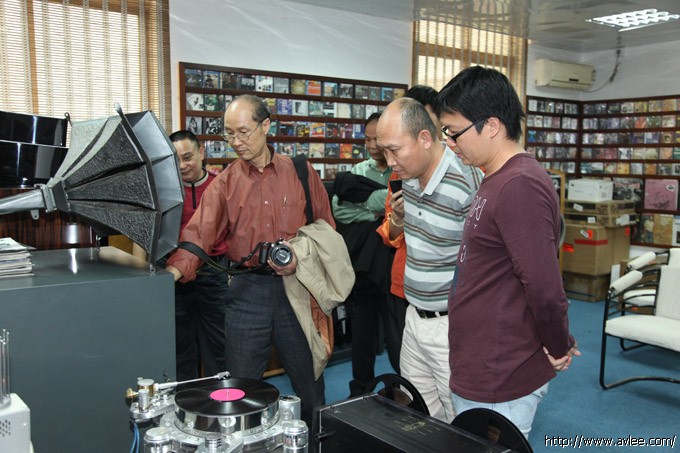 昨天(2012年4月7日),广州发烧友一行人前来我集团参观指导。登上三楼,来到音博馆时,集团总经理李积回先生非常热情,陪同他们参观音博馆的每个细节部分,看到馆内藏有如此之多的音响铭器,他们都兴喜若狂,一边参观一边与李积回先生进行了愉快的交谈。在交流的过程中,他们进行了深入的了解和交流,并对世界发烧音响博物馆的未来方向提出了很多宝贵意见。