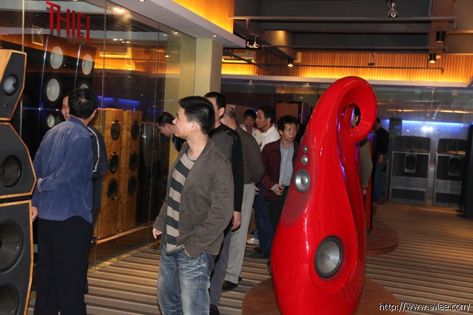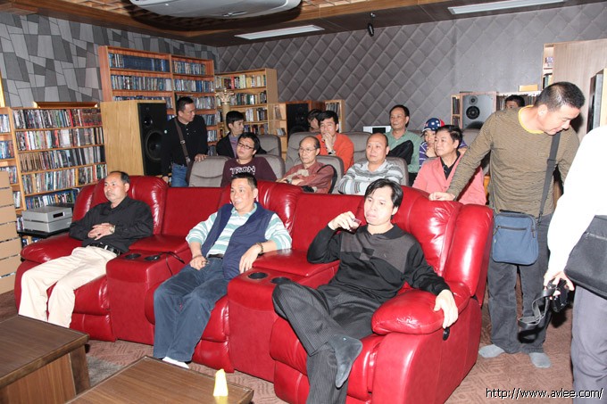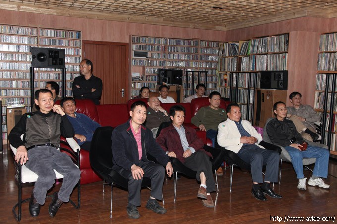 2012年4月7日,顺德发烧友一行38人莅临我集团参观指导。集团总经理李积回先生热情陪同他们一一浏览了世界发烧音响博物馆内所有多、奇、珍贵、稀有的藏品。在参观过程中,他们不仅认真欣赏了3D电影,观看具有9.4声道的影片,更是亲身聆听不同视听室的绝妙名曲。经过几个小时的切身感受,他们都觉得犹如未尽,李积回先生便邀请他们到其府上一续未了缘。