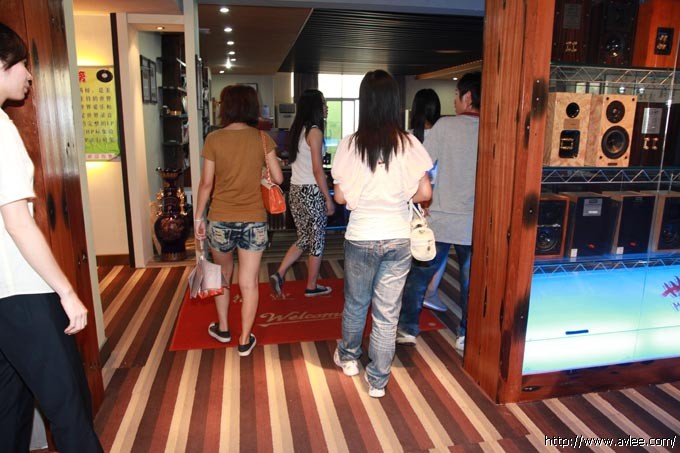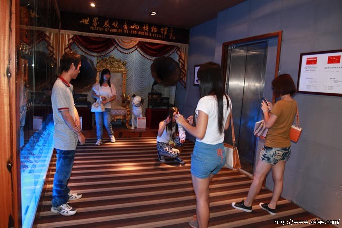 2012年5月26日星期六,阳江师范大一、大二学生在跆拳道谢会长的带领下来到十八子集团世界发烧音响博物馆参观学习。她们从漂亮的袋子掏出时尚的手机拍录下世界音响博物馆的珍贵音响藏品的俪影。这里展示了世界著名品牌ATC, B&W, Cello, Dynaudio, EmmLabs, FM Acoustics, Goldmund, HALCRO, Infinity, Jadis, Kharma,Westlake,Mbl…她们大专学生一行人感受到世界发烧音博馆魅力无比的氛围,手舞足蹈的跟世界杰出的旗舰作品合照留念。