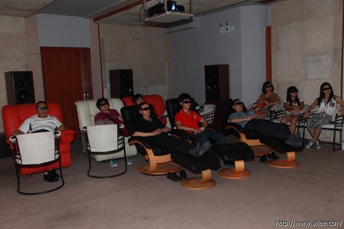 阳江师范大一、大二学生在跆拳道谢会长的带领下来到十八子集团世界发烧音响博物馆的3D影院室观看高清影片