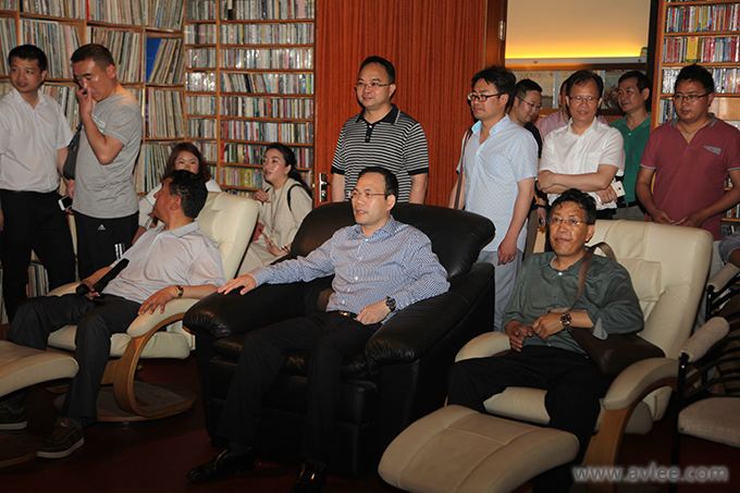 接着,接待人员带领大家参观了世界发烧音响博物馆。接待人员详细的为大家介绍了静态器材陈列室、晶体管陈列室、CD机陈列室,让他们了解了各种音响器材的特点及历史。随后,接待人员邀请他们走进影院室和听音室体验了现代音响设备所带来的完美音质及绚丽的视觉效果。