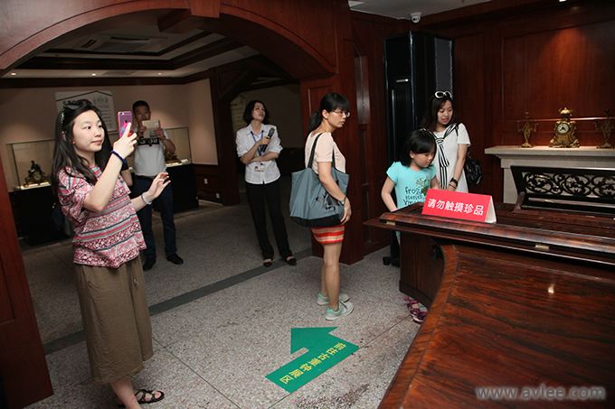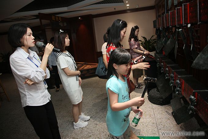 接着,大家参观了二楼世界音响历史博物馆。这是全国首个“音乐与刀”专题博物馆。该馆分为“拍照留念区”、“音乐与刀主题区”、“古董钟展示区”、“音乐盒展区”、“留声机展区”、“现代器材展区”、“音乐载体区”、“音乐体验区”、“音箱展区”共9个展区。本馆的设计颇具匠心,利用“刀形编钟”为引子,引出音乐原来是从最原始的生产工具中产生的,后来才慢慢地“进化”为各种不同形式、不同音效的器具载体。