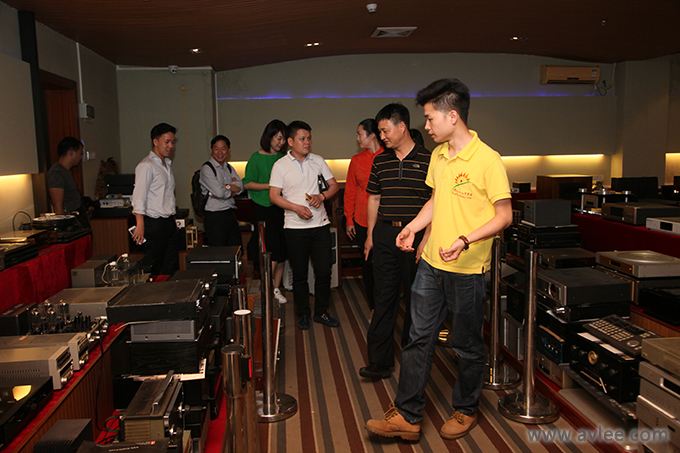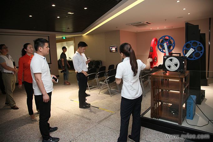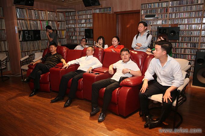 随后,大家参观了三楼世界发烧音响博物馆,接待人员邀请他们走进影院室和听音室体验了现代音响设备所带来的完美音质及绚丽的视觉效果。过后他们都纷纷感叹我馆音响艺术的神奇奥妙。