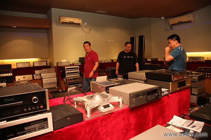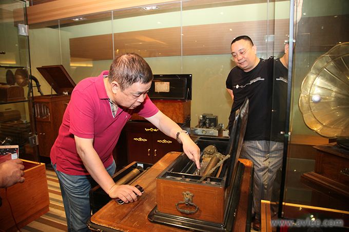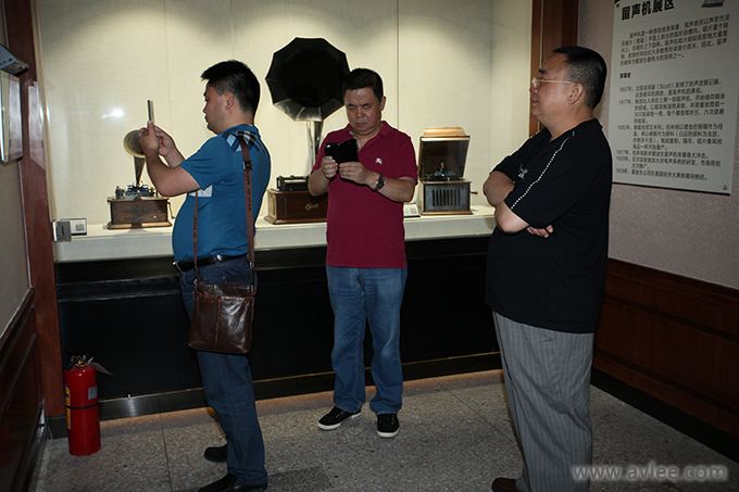随后,李积回总经理又热情地邀请他们到三楼的世界发烧音响博物馆参观。他们一起参观了留声机陈列室、CD机功放陈列室和音响陈列室三个静态陈列室,让他们了解了馆内收藏的各种音响器材设计特点及历史来源。随后,总经理李积回先生又陪同他们到影院室和听音室体验了现代音响设备所带来的完美音质及顶级的视觉效果。