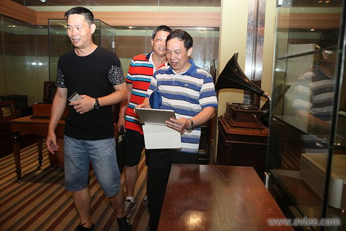 在接待人员的带领下,他们又到了世界发烧音响博物馆进行试听。该馆有18间按声学设计的听音房。他们听了本馆精美的音响作品。来宾们享受人声、民乐与交响乐所流传出来的声音的同时,也感受着人世间力与美的结合。