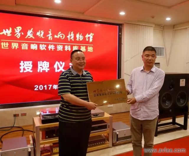 陈立新秘书长为世界发烧音响博物馆授“世界音响软件资料库基地”牌匾