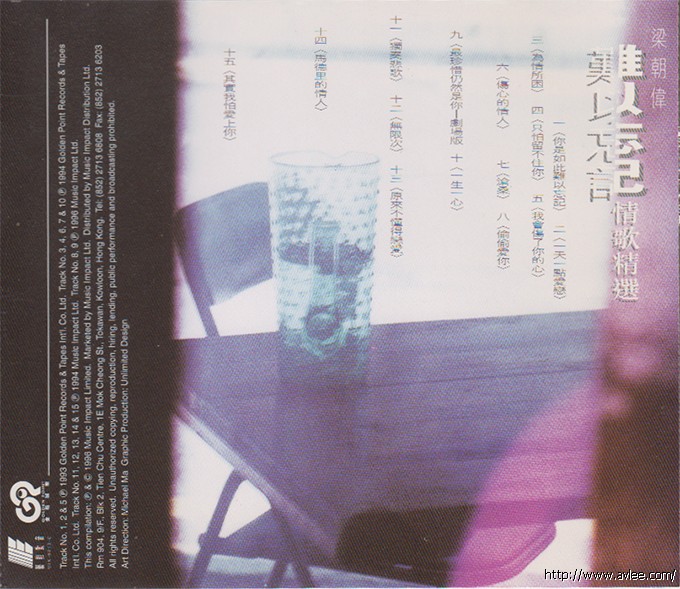 唱片名称:梁朝伟 难以忘记情歌精选歌手名称:梁朝伟发行公司:金点唱片发行编号:MIX-9616-C发行日期:1996年