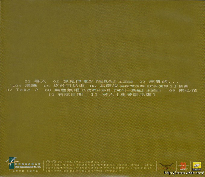 唱片名称:赵学而 寻人 歌手名称:赵学而发行公司:正视音乐发行编号:FCCS 92062CD发行日期:1997年