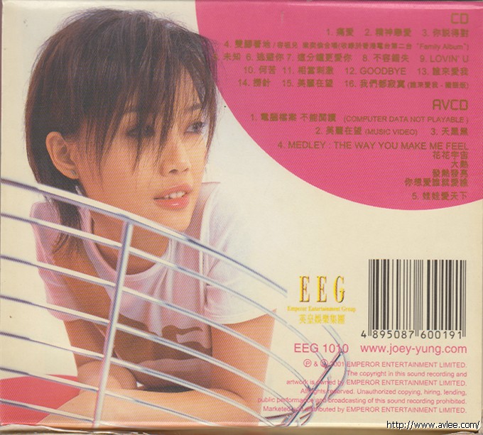 唱片名称:容祖儿 喜欢祖儿歌手名称:容祖儿发行公司:EEG 发行编号:EEG 1010发行日期:2001年