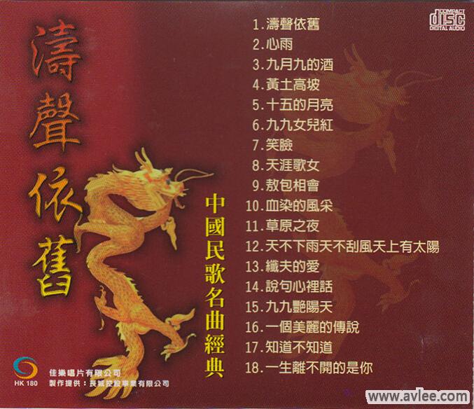 唱片名称:涛声依旧 中国民歌名曲经典 发行公司:佳乐唱片发行编号:HK 180