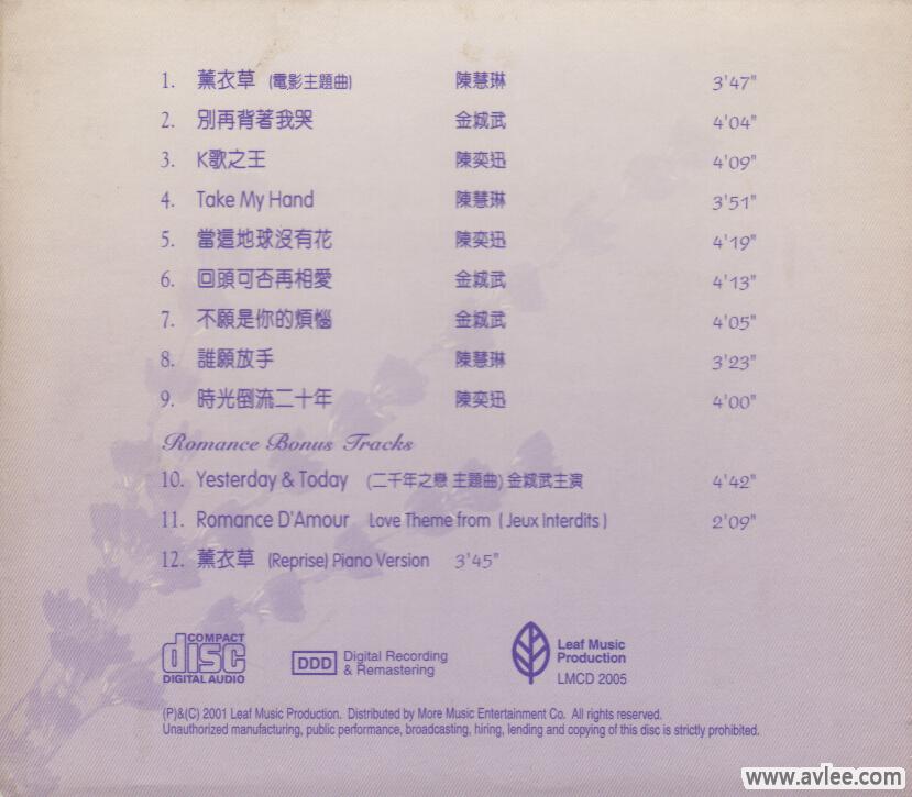 唱片名称: 薰衣草音乐盒专辑发行日期:2001年