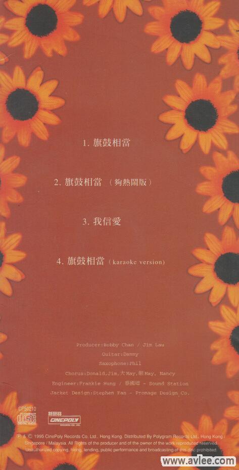 唱片名称: 汪明荃 旗鼓相当歌手名称:汪明荃发行公司:新艺宝发行编号:CP50210发行日期:1995年