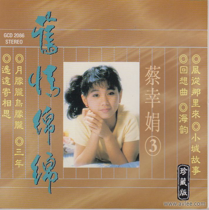 唱片名称:旧情绵绵3歌手名称:蔡幸娟 发行公司:新加坡皇星机构出品发行编号:GCD 2086发行日期:唱片美图: