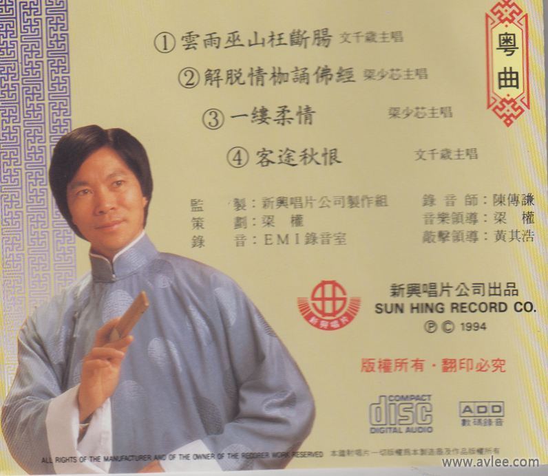 唱片名称:客途秋恨 云雨巫山枉断肠歌手名称:文千岁发行公司:新兴唱片公司出品发行编号:SHCD 357发行日期:1994年
