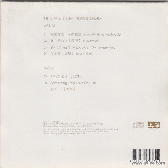 唱片名称:2029 张学友当我想起你歌手名称:张学友发行编号:WCD2238发行日期:2000年