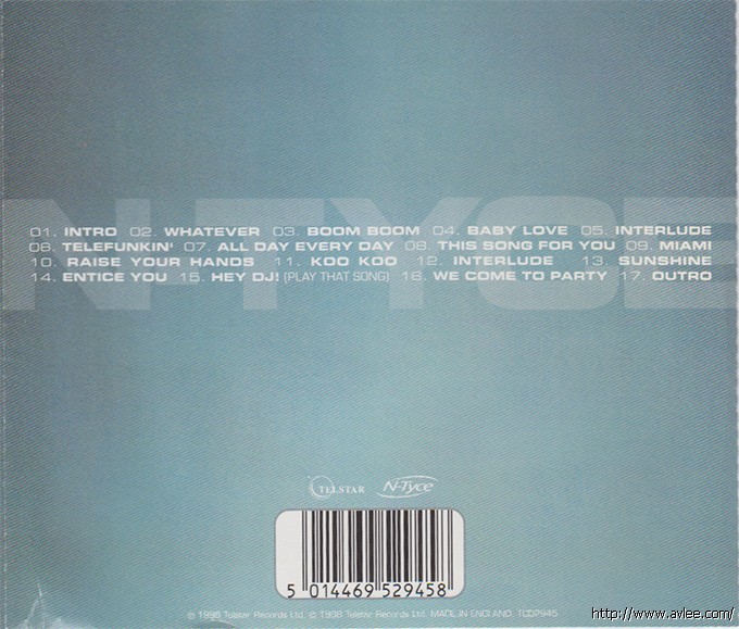 唱片名称:All Day Every Day艺术家名称:N-Tyce发行公司:TELSTAR发行编号:TCD2945发行日期:1998年
