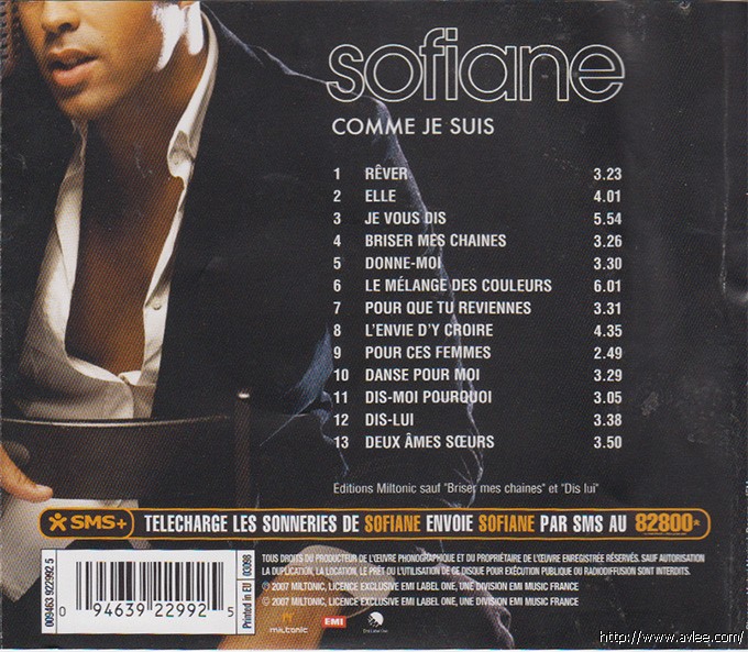 唱片名称:Comme Je Suis艺术家名称:Sofiane发行公司:EMI发行编号:0094639229925发行日期:2007年
