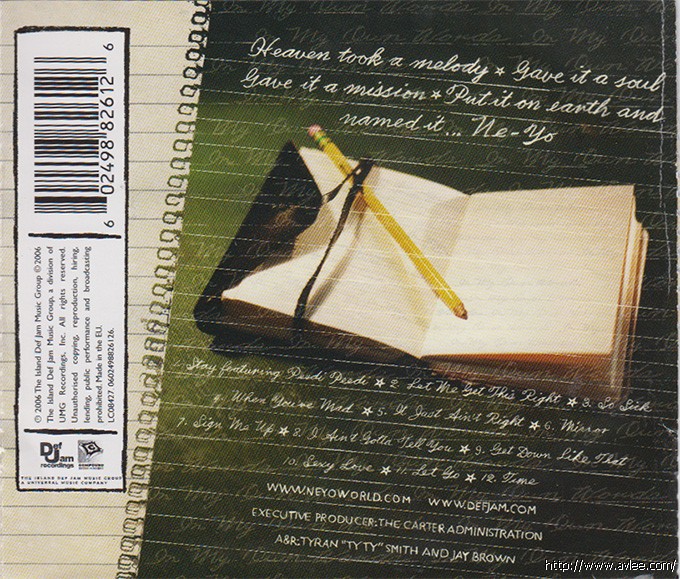 唱片名称:In My Own Words艺术家名称:Ne-Yo发行公司:Def Jam发行编号:0602498826126发行日期:2006年