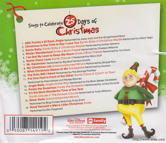 唱片名称:Songs To Celebrate 25 Days Of Christmas艺术家名称:Various发行公司:Walt Disney发行编号:D000458302发行日期:2009年