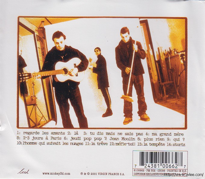 唱片名称:La Trêve艺术家名称:Mickey 3d 发行公司:Virgin France 发行编号:724381006627发行日期:2001年