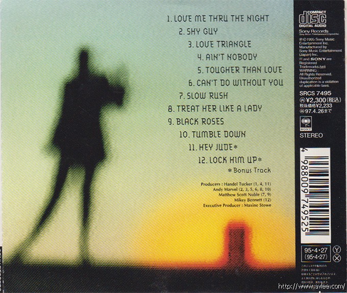 唱片名称:Tougher Than Love艺术家名称:Diana King发行公司:Sony发行编号:SRCS 7495发行日期:1995年