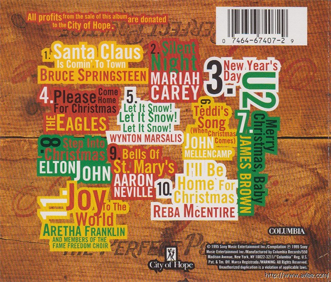 唱片名称:Christmas of Hope艺术家名称:Christmas Of Hope发行公司:Sony发行编号:CK 67407发行日期:1995年