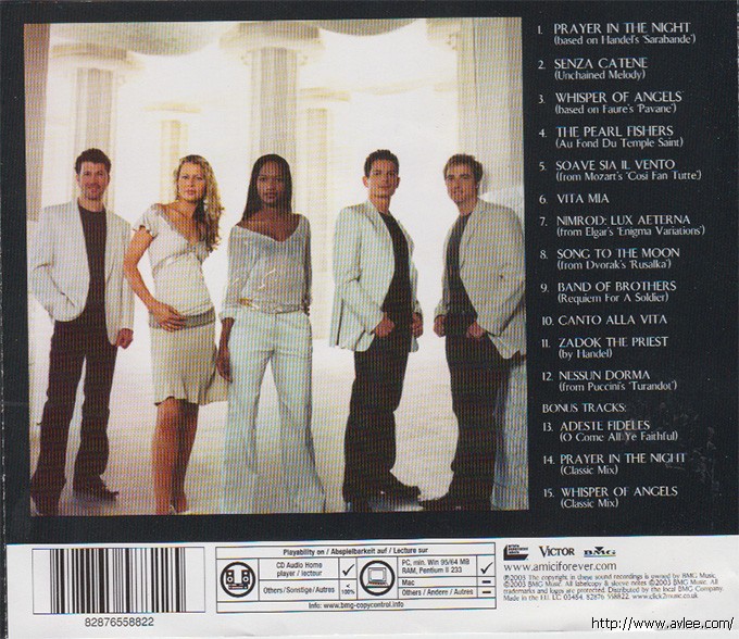 唱片名称:The Opera Band艺术家名称:Amici Forever发行公司:RCA Victor发行编号:82876558822发行日期:2003年