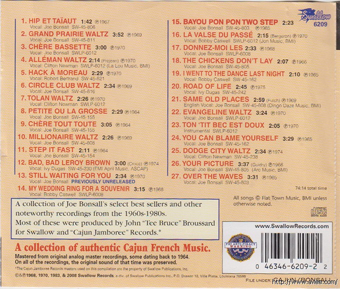 唱片名称:Cajun Jamboree: The Essential Collection of Joe Bonsall & the Orange Playboys