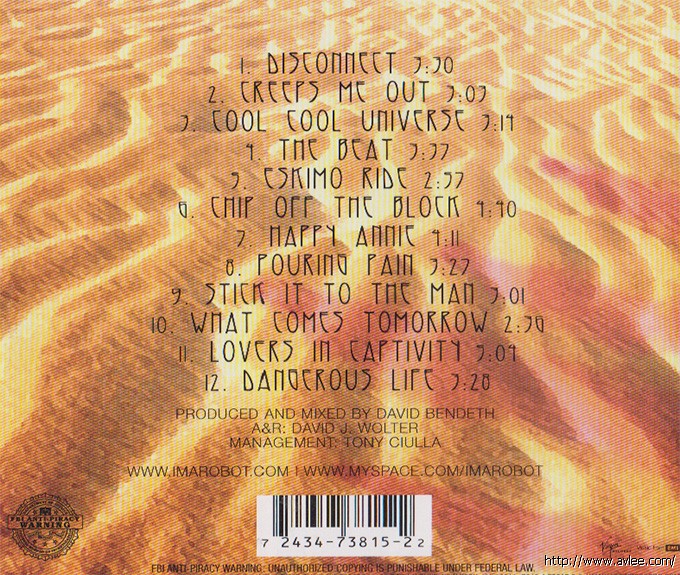 唱片名称:Monument to the Masses艺术家名称: Ima Robot发行公司:Virgin发行编号:724347381522发行日期:2006年