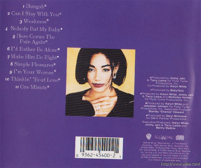 唱片名称:Make Him Do Right艺术家名称:Karyn White发行公司:Warner Bros.发行编号:9 45400-2发行日期:1994年