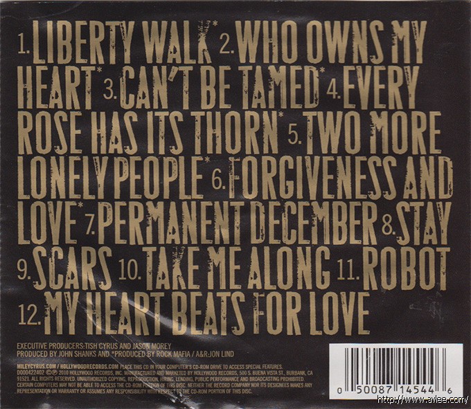 唱片名称:Can't Be Tamed 艺术家名称:Miley Cyrus 发行公司:Hollywood发行编号:D000422402发行日期:2010年
