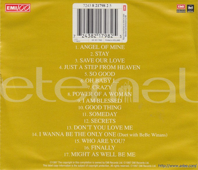 唱片名称:Eternal - Greatest Hits艺术家名称: Eternal发行公司:EMI发行编号:724382179825发行日期:1997年