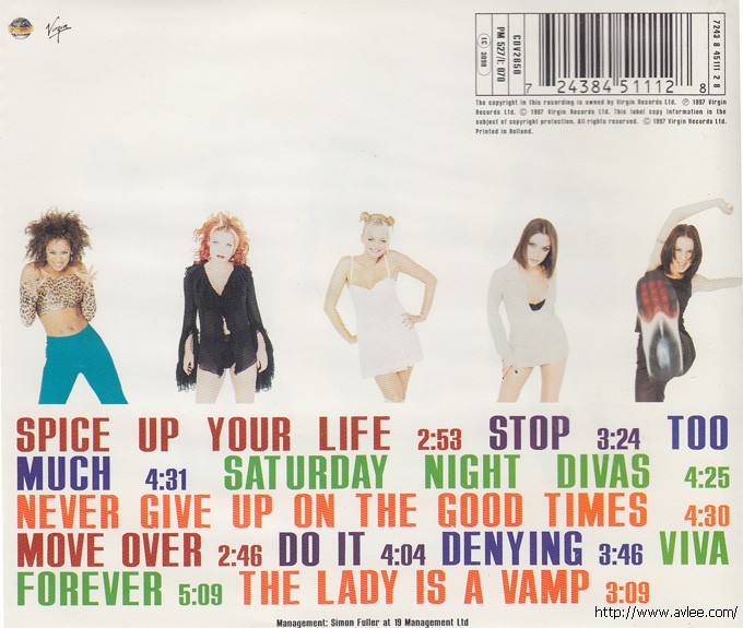 唱片名称:Spiceworld艺术家名称: Spice Girls发行公司:Virgin发行编号:CDV2850发行日期:1997年