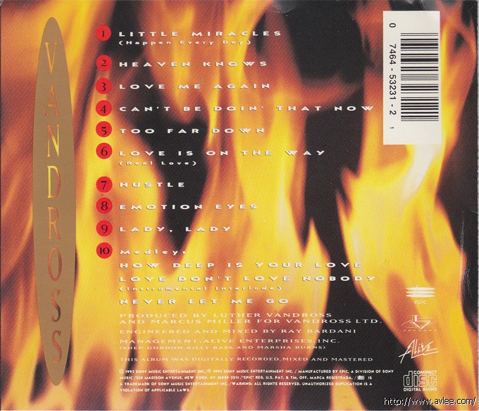 唱片名称:Never Let Me Go艺术家名称: Luther Vandross 发行公司:EPIC/LV RECORDS发行编号:EK 53231发行日期:1993年