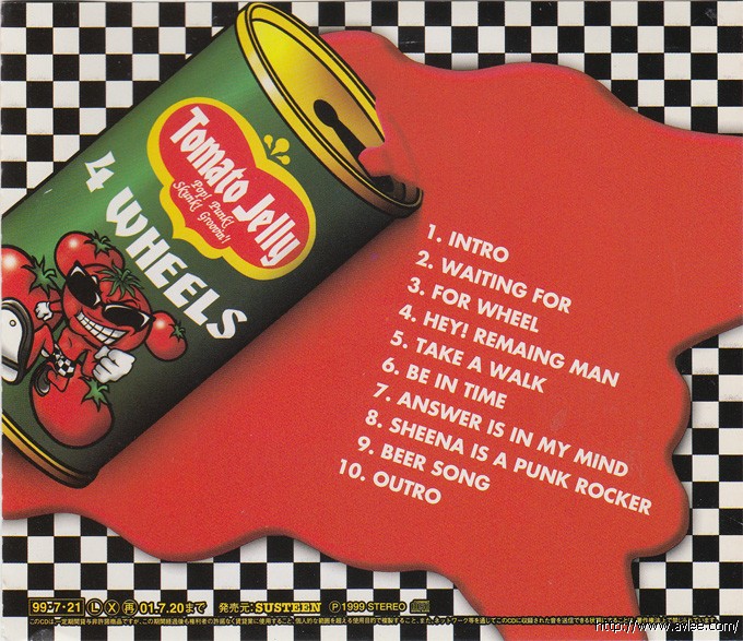 唱片名称:4 Wheels艺术家名称:Tomato Jelly发行公司:Import发行编号:STN-002发行日期:1999年