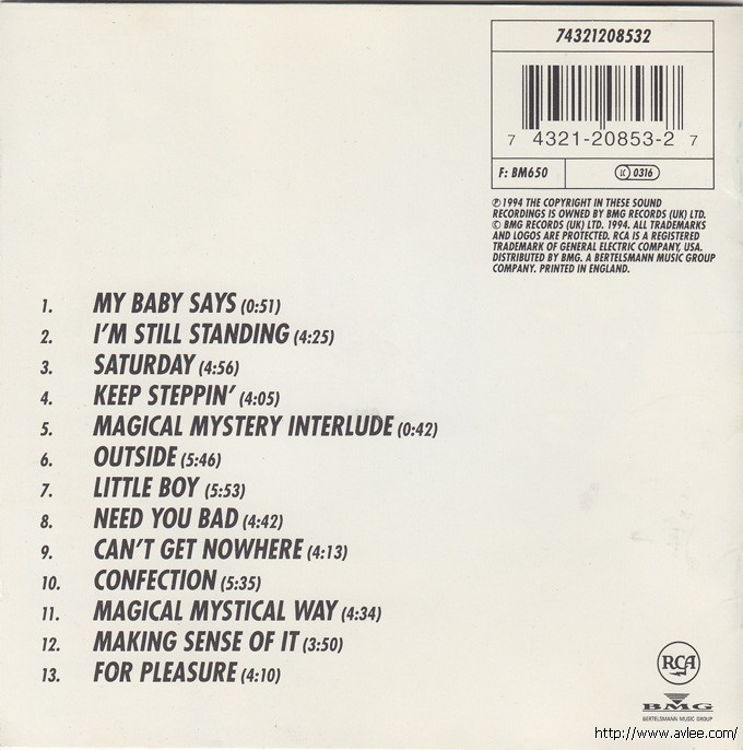 唱片名称:For Pleasure艺术家名称:Omar发行公司:BMG发行编号:74321208532发行日期:1994年