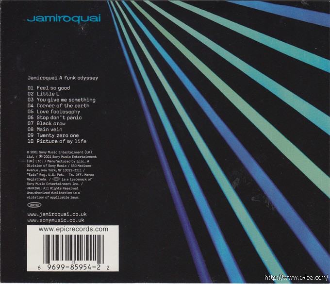 唱片名称:A Funk Odyssey艺术家名称:Jamiroquai 发行公司:SONY MUSIC发行编号:EK 85954发行日期:2001年