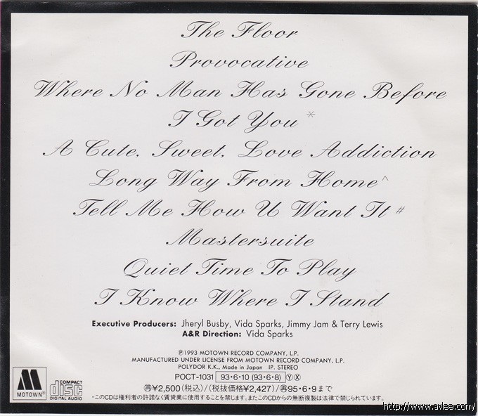 唱片名称:Provocative艺术家名称:Johnny Gill发行公司:MOTOWN发行编号:POCT-1031发行日期:1993年