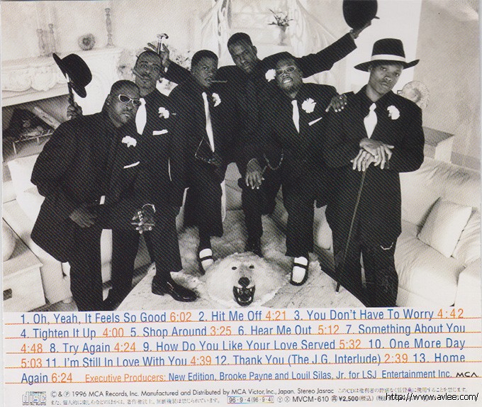 唱片名称:Home Again艺术家名称:New Edition发行公司:MCA发行编号:MVCM-610发行日期:1996年